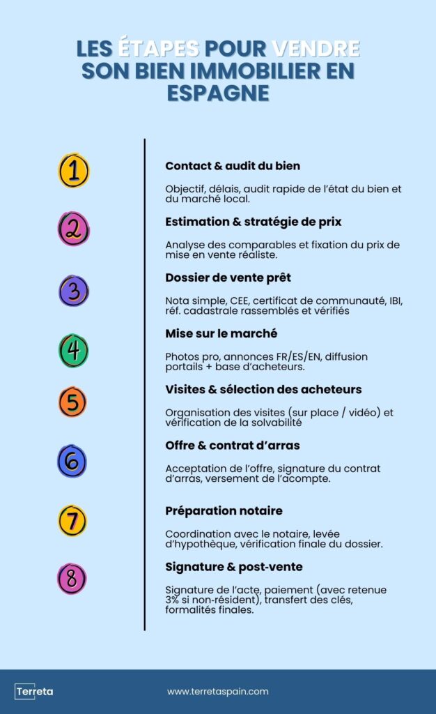 • Une agence multilingue (français / anglais / espagnol) comme Terreta Spain sécurise la vente : prix réaliste, dossier complet, mise en marché professionnelle, qualification des acheteurs, accompagnement fiscal.